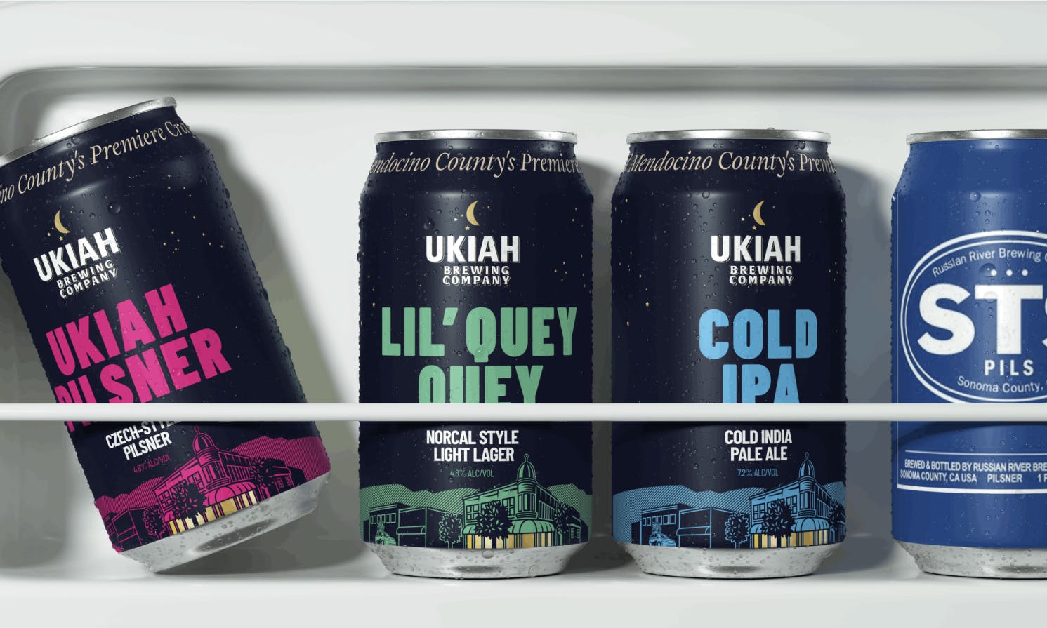 When placed alongside established regional craft brands, Ukiah Brewing Company’s cans read clearly at a distance and hold up under closer inspection; signaling quality without explanation.
